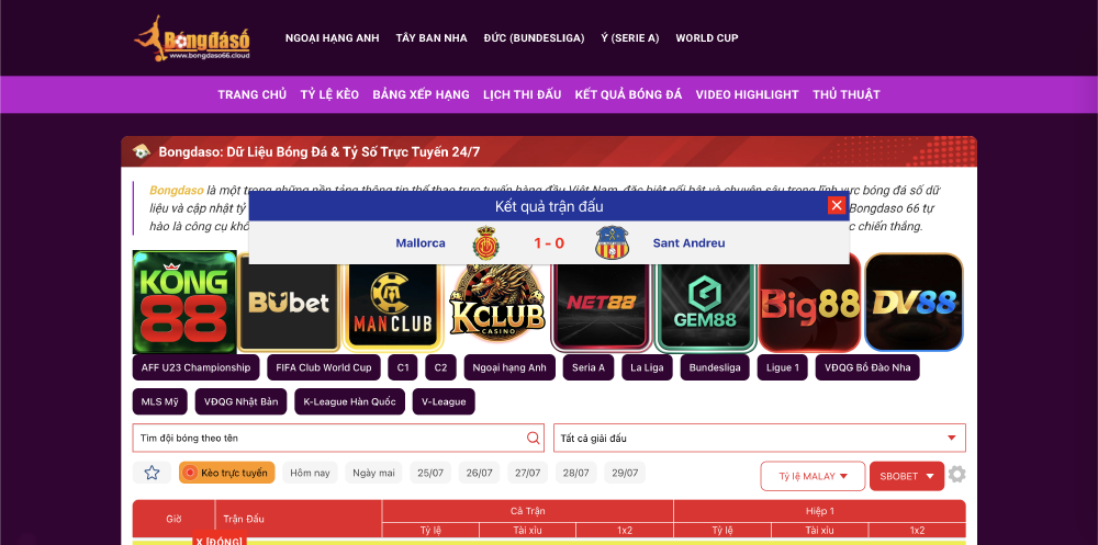 Bóng đá số mang đến cho người hâm mộ kho dữ liệu lịch thi đấu đầy đủ từ các giải đấu lớn nhỏ: